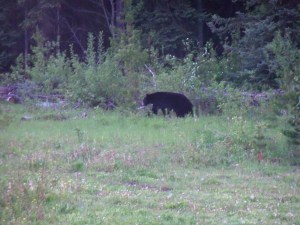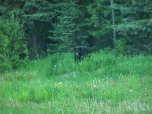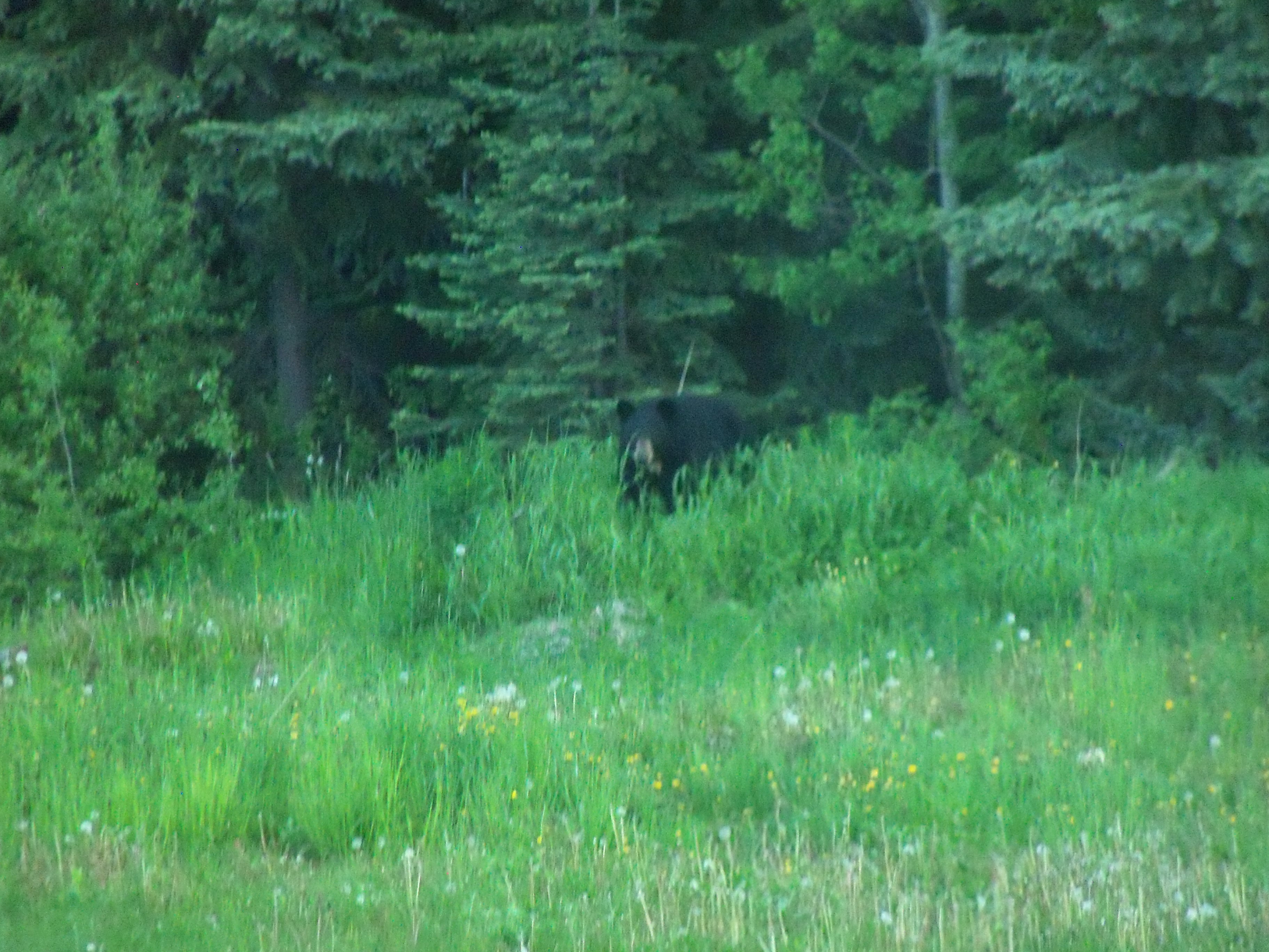 We have pulled up about 150 miles short of Dawson Creek to camp for the night at a small RV park to make some final repairs to the damaged water tank that the drive shaft hit when it blew up. I mixed up some JB weld and spread it on the crack to seal it but it will have to dry overnight before we can fill up the freshwater tank in the morning. Meanwhile, I decided to get the mountain bike off the back of la jefa and go for a little ride. It is now 12;18 mountain time and still lights out. As I write this my mother spots a bear coming into camp. I hurry to grab the camera and snap the shot, wow he’s looking right at us! Nice headshot, now one of his profile as he lumbers away to finish his dinner.