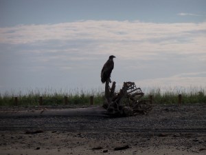 The second Eagle is full-grown and seemed to make the dead tree look small in comparison. There were many Bald Eagles in the area as well. Mert just wanted to see a Moose but I think the birds ate them all because we didn’t see a single one until the day we left. We were told that they are all calving right now.