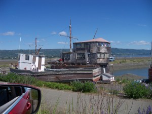 We headed south through town and spotted a few planes sitting on the water and quickly realized that they were charter planes for fishing, bear watching and the like. One plane was getting ready to take off so we sat and watched it go. It sure seems to take a lot longer for the aircraft to get airborne from the water? After that we continued south across the bridge on the peninsula for a few more miles. The road kept going until we found this!