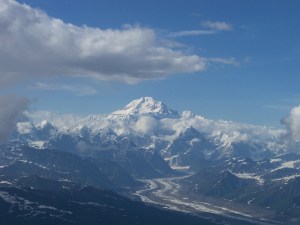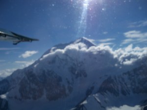 After lunch Mert and OB perused town, Mert found her Moose charm, OB found some ice cream and I went down and booked a 3-hour flight tour of Mt. McKinley that included a glacier landing. I can’t begin to tell you how incredible it was to land on that glacier with my father (Mert wouldn’t go). The view of Mt. McKinley from the glacier was simply spectacular. We could see base camp (for the climbers) from the air and were able to get close enough to see the color of the tents each climber had.