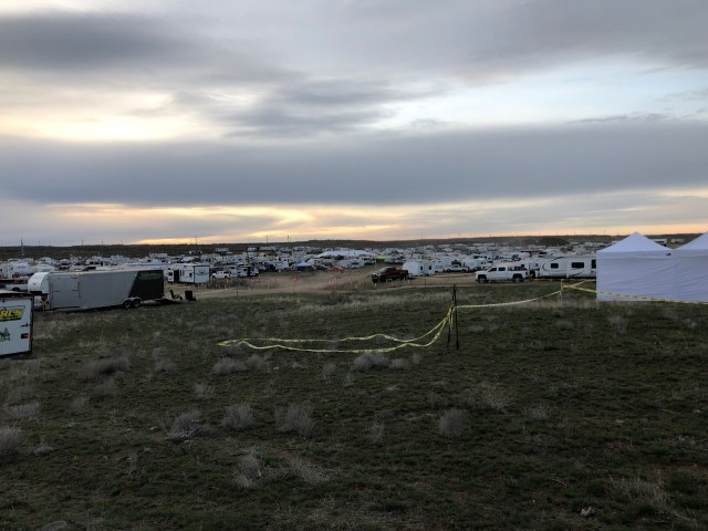 We left bend on a Wednesday before the race and stayed in an ORV riding area just Northeast of the Tri-Citys in Southeastern Washington. The road back to the campsite was about five miles of dirt but fairly smooth. There was a big sand dune to the East and a large cattle feed-lot to the West. Guess which way the wind blew that night? PEEEEYOUUU!!