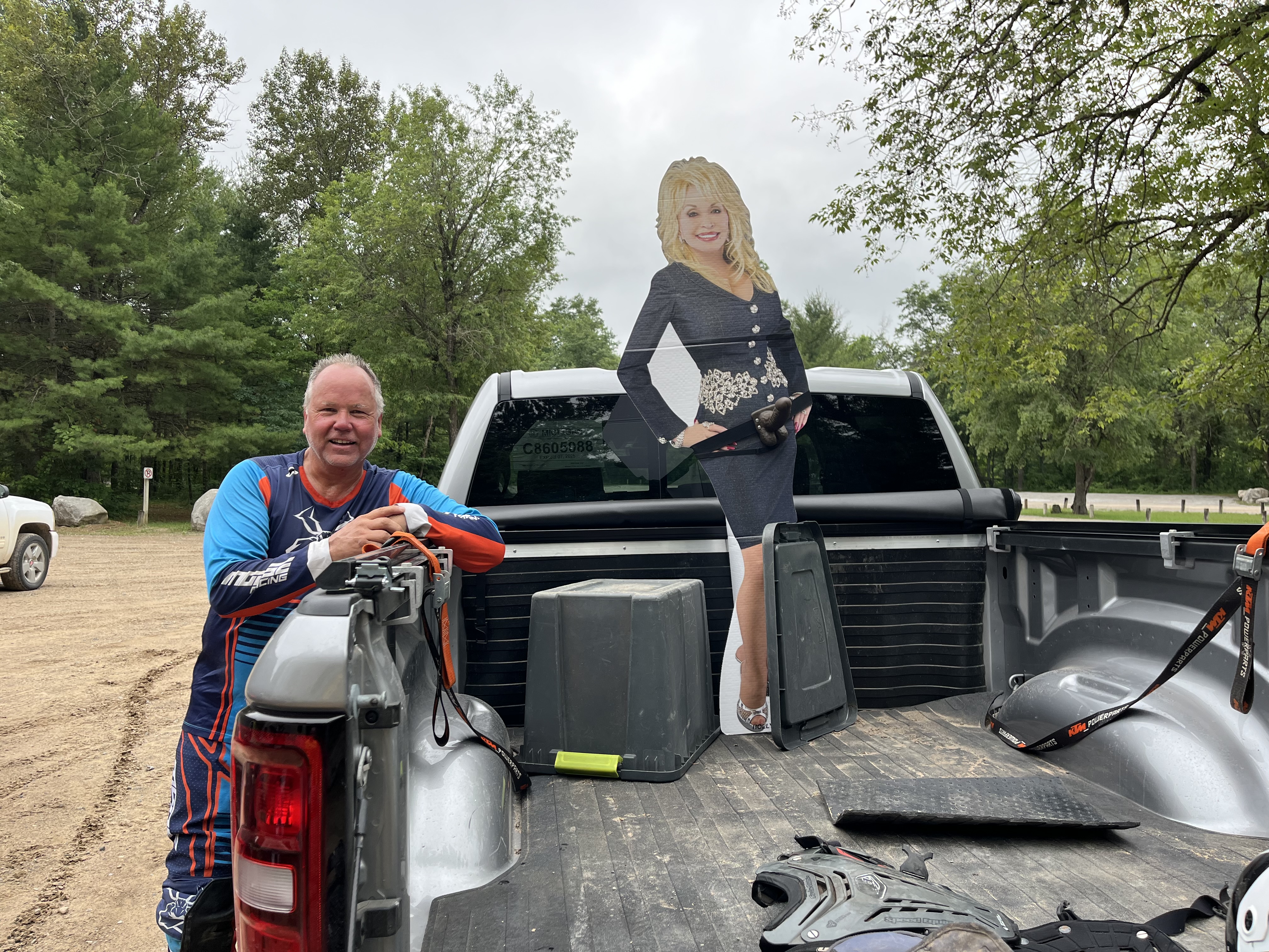 That’s when Scott pulled up to his truck and spotted it: a life-sized cardboard cutout of Dolly Parton standing proudly in the bed of his truck. And Dolly? She wasn’t alone. She was sporting a strap-on dildo that would’ve made John Holmes envious.